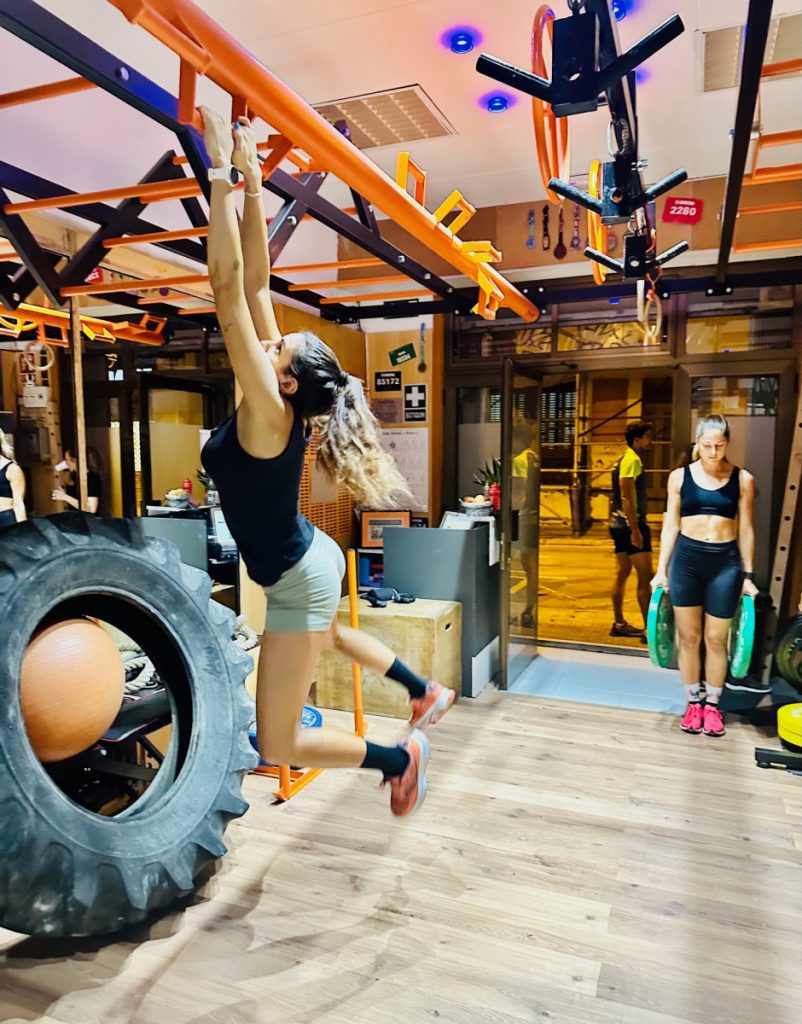 – Suspensión: obstáculos diversos desde monkey bar y cuerda de trebar a top holds o twister.